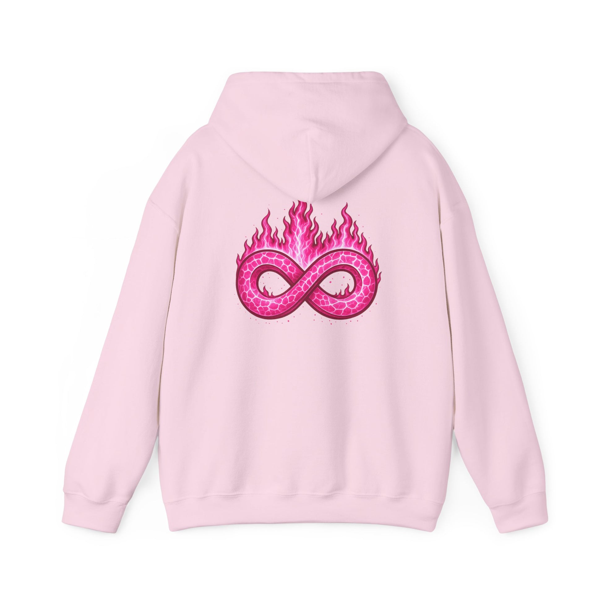 The OTN Infinite Love (Pink) Hoodie represents love that keeps burning, no matter the pressure placed against it. The infinity symbol stands for permanence, while the pink flame symbolizes compassion, strength, and growth through emotion.